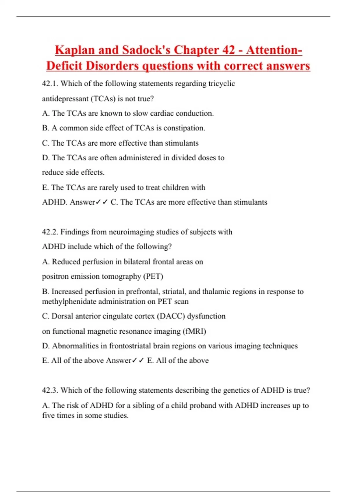 Kaplan and Sadock's Chapter 42 - Attention-Deficit Disorders questions with correct answers