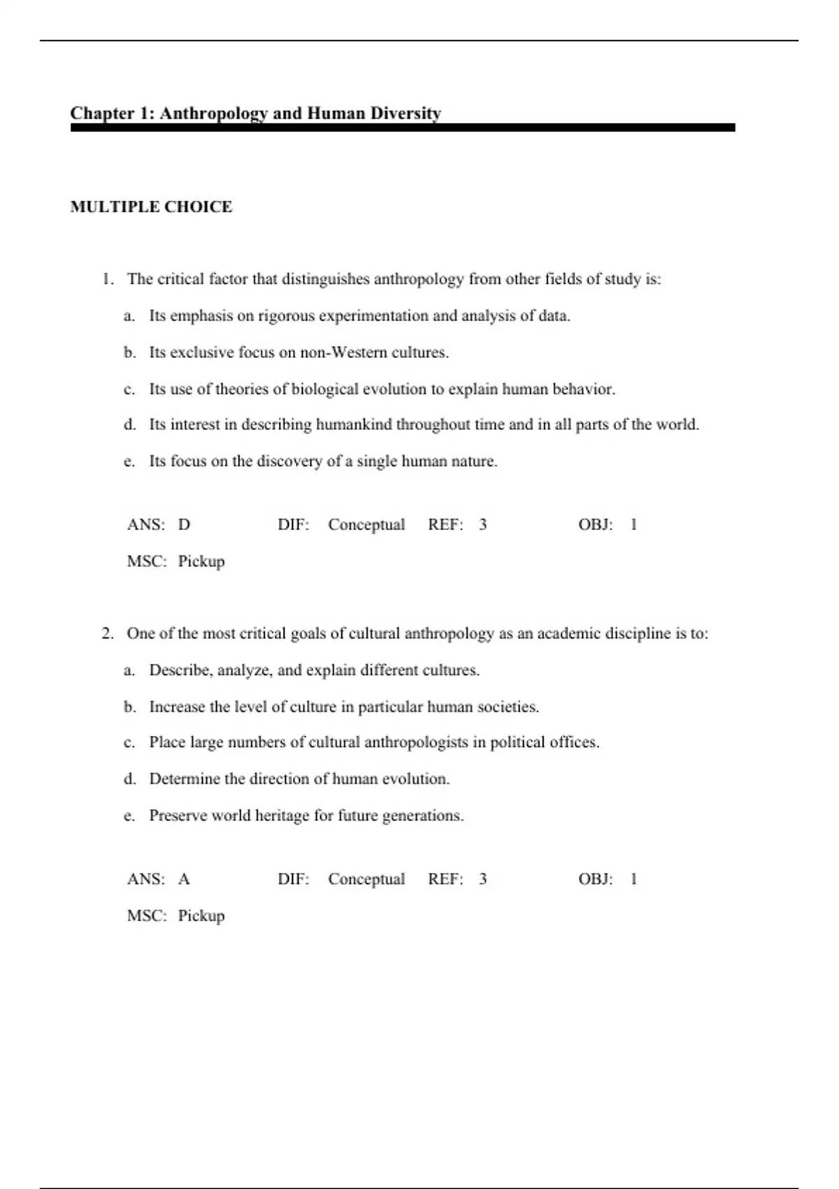 1. The critical factor that distinguishes anthropology from other fields of study is: