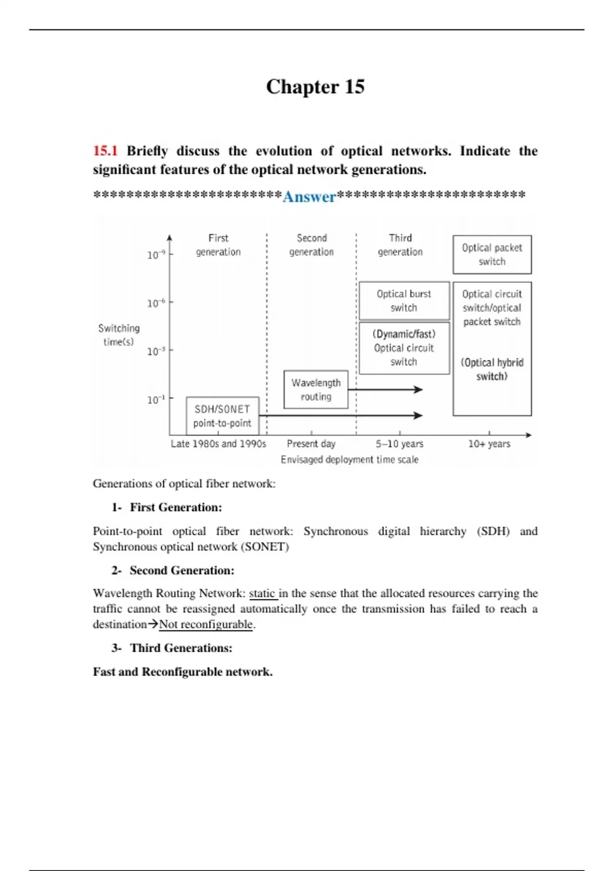 15.1 Briefly discuss the evolution of optical networks. Indicate the