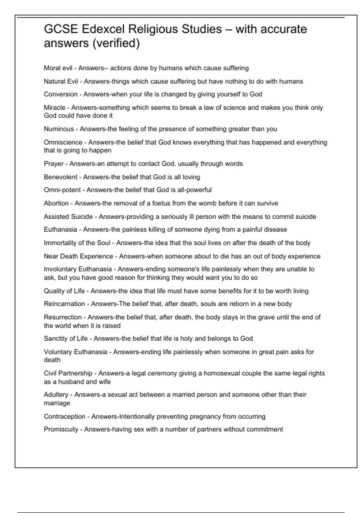 ,GCSE Edexcel Religious Studies – with accurate