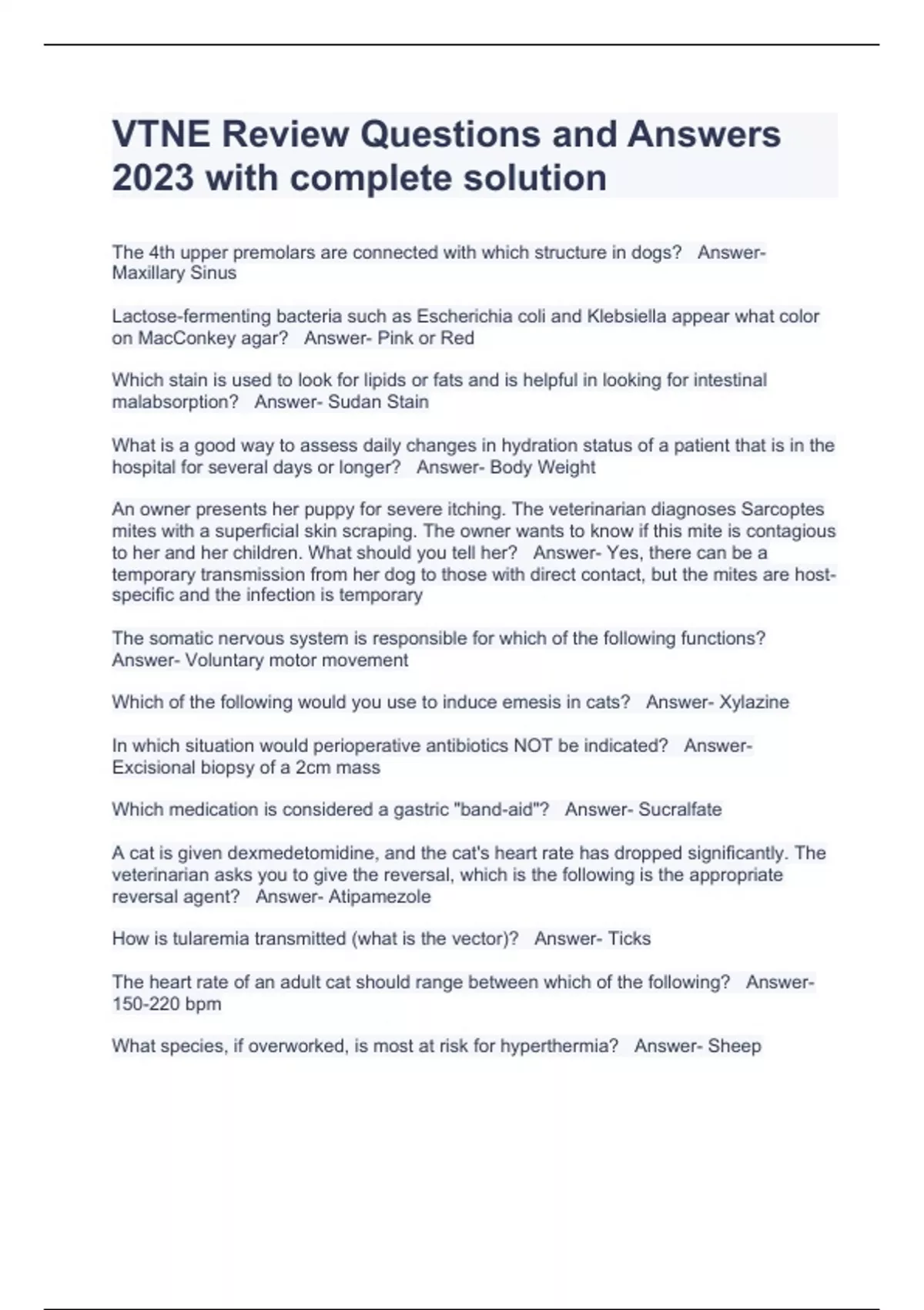 VTNE Review Questions and Answers 2023 with complete solution