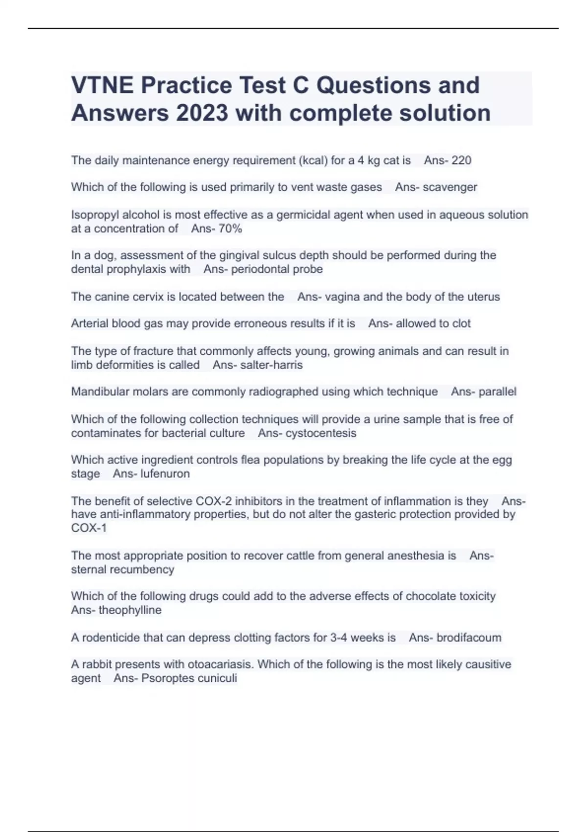 VTNE Practice Test C Questions and Answers 2023 with complete solution