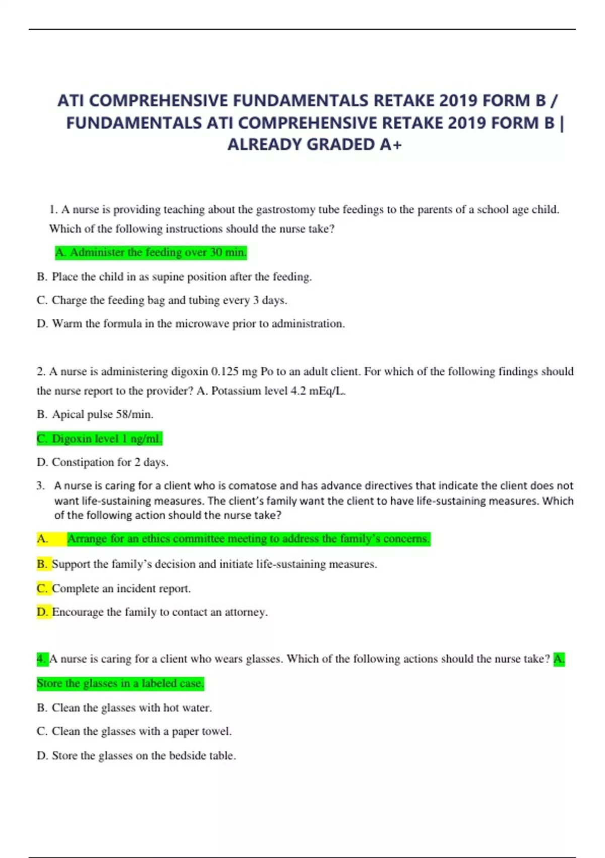 ATI COMPREHENSIVE FUNDAMENTALS RETAKE 2019 FORM B / FUNDAMENTALS ATI COMPREHENSIVE RETAKE 2019 FORM B | ALREADY GRADED A+