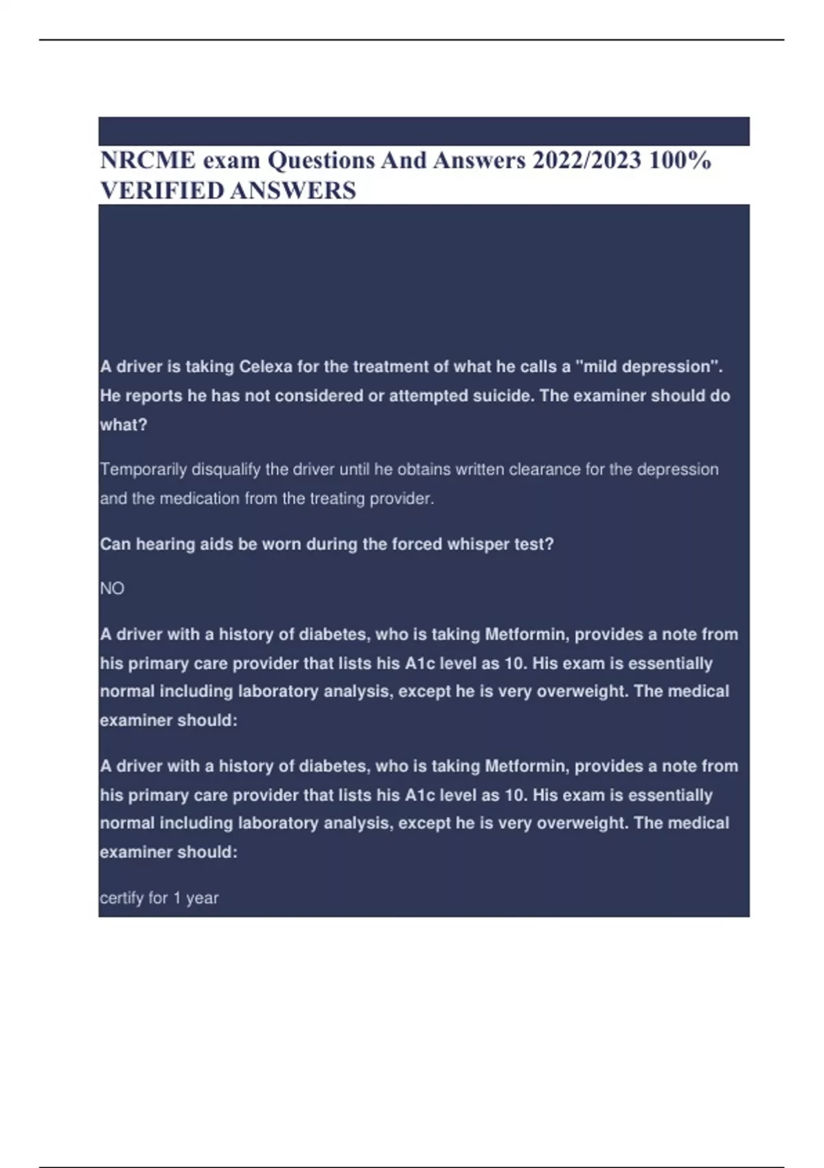 NRCME exam Questions And Answers 2022/2023 100% VERIFIED ANSWERS