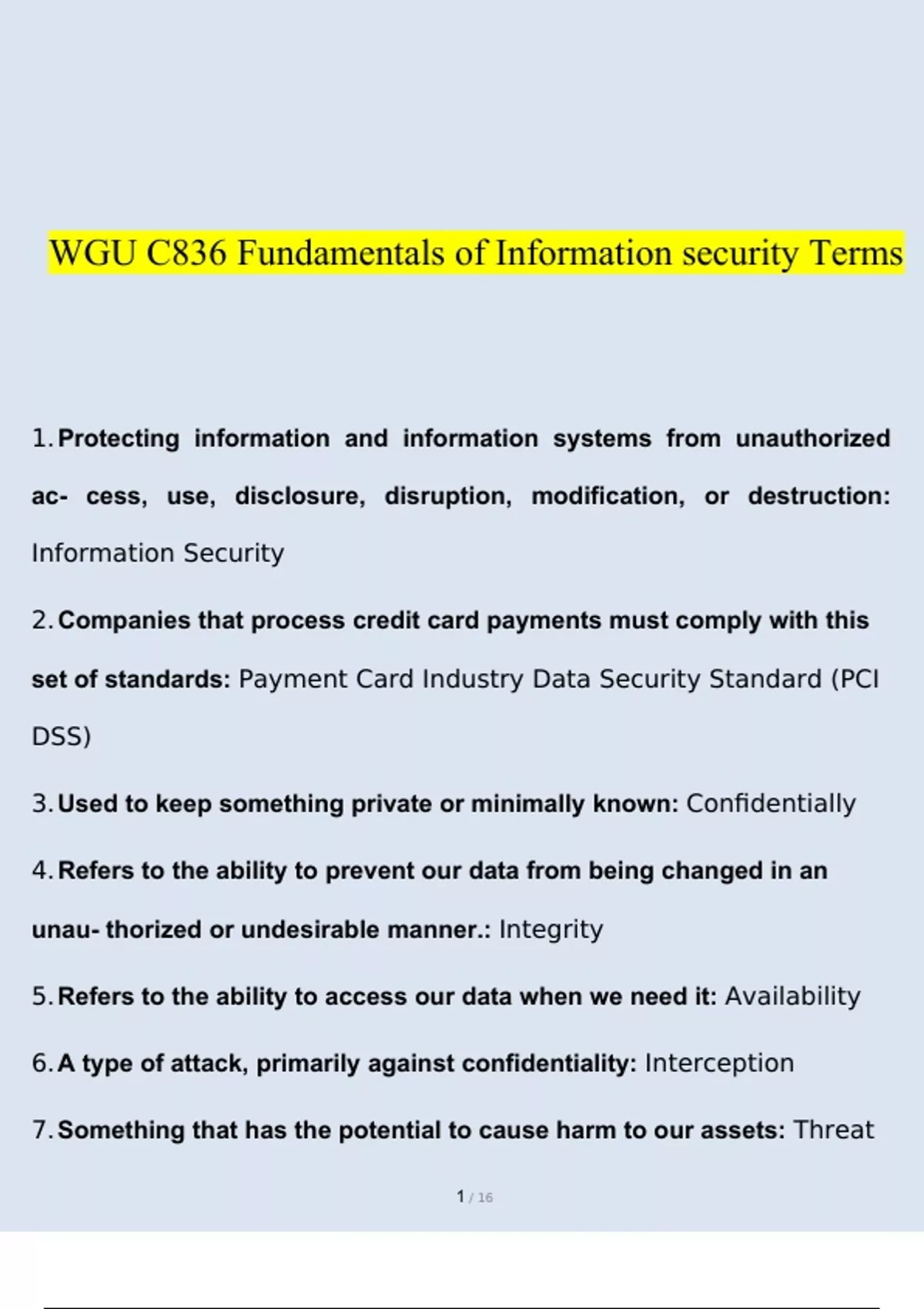 WGU C836 Fundamentals of Information Security EXAM 2023 STUDY BUNDLE PACK SOLUTION (Verified Answers)