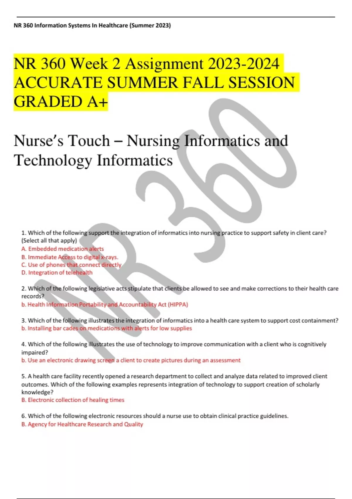nr 360 week 2 assignment 2023 2024 accurate