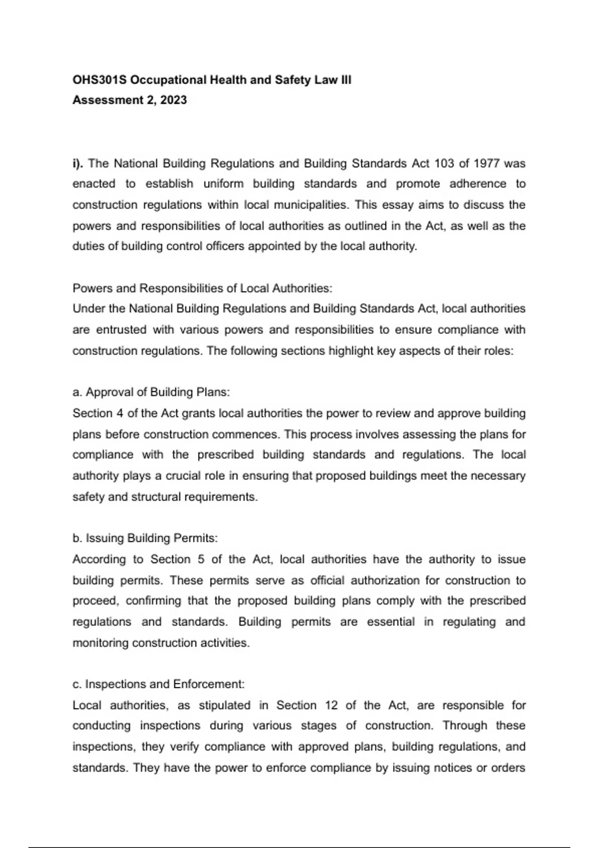 i). The National Building Regulations and Building Standards Act 103 of 1977 was