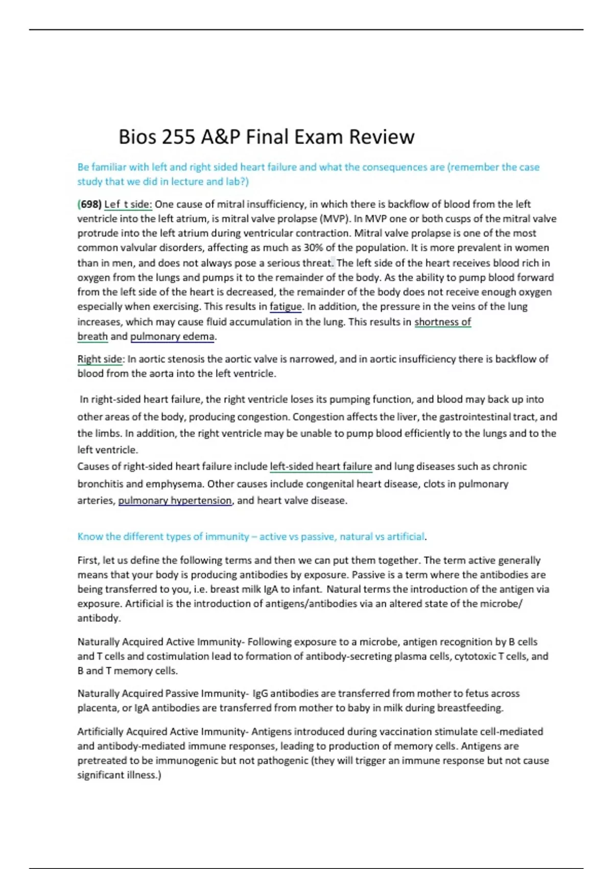 BIOS 255 A&P Final Exam Review 2023/2024 Graded A+