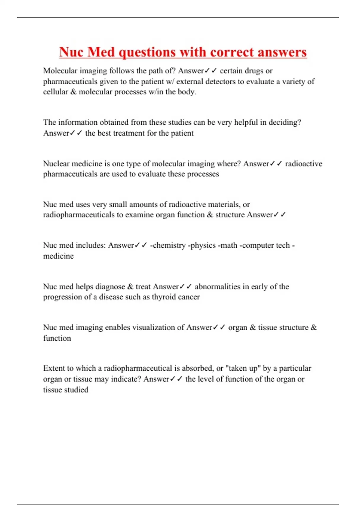 nuc med questions with correct answers