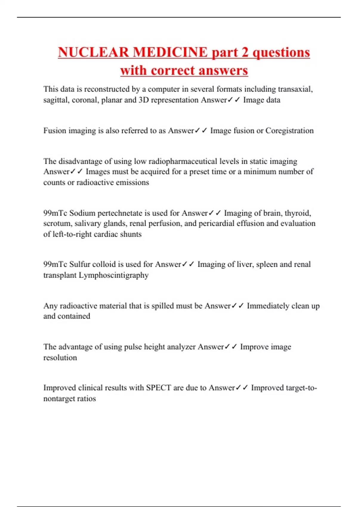NUCLEAR MEDICINE part 2 questions with correct answers