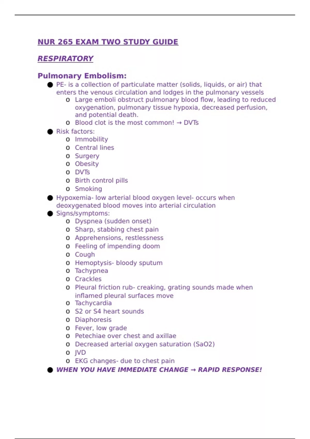 NUR 265 EXAM TWO STUDY GUIDE