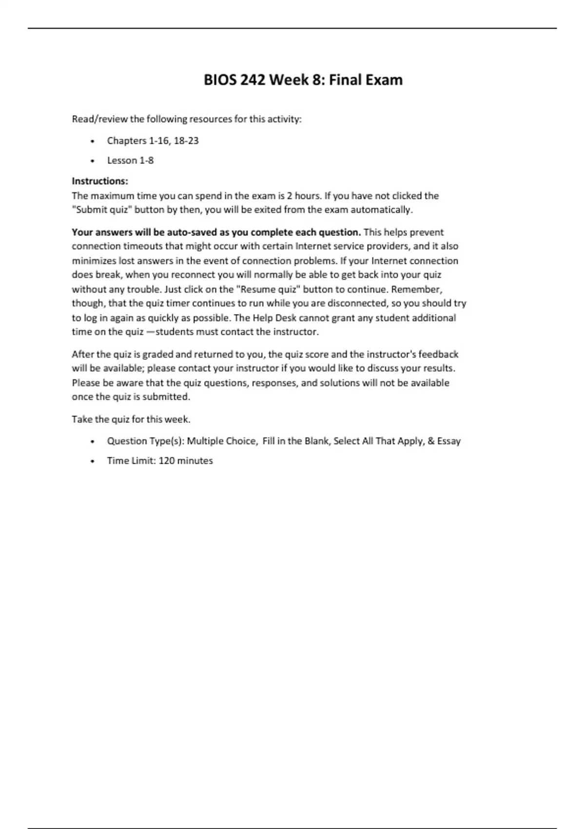 BIOS 242 Week 8: Final Exam BIOS 242 Week 8: Final Exam BIOS 242 Week 8: Final Exam