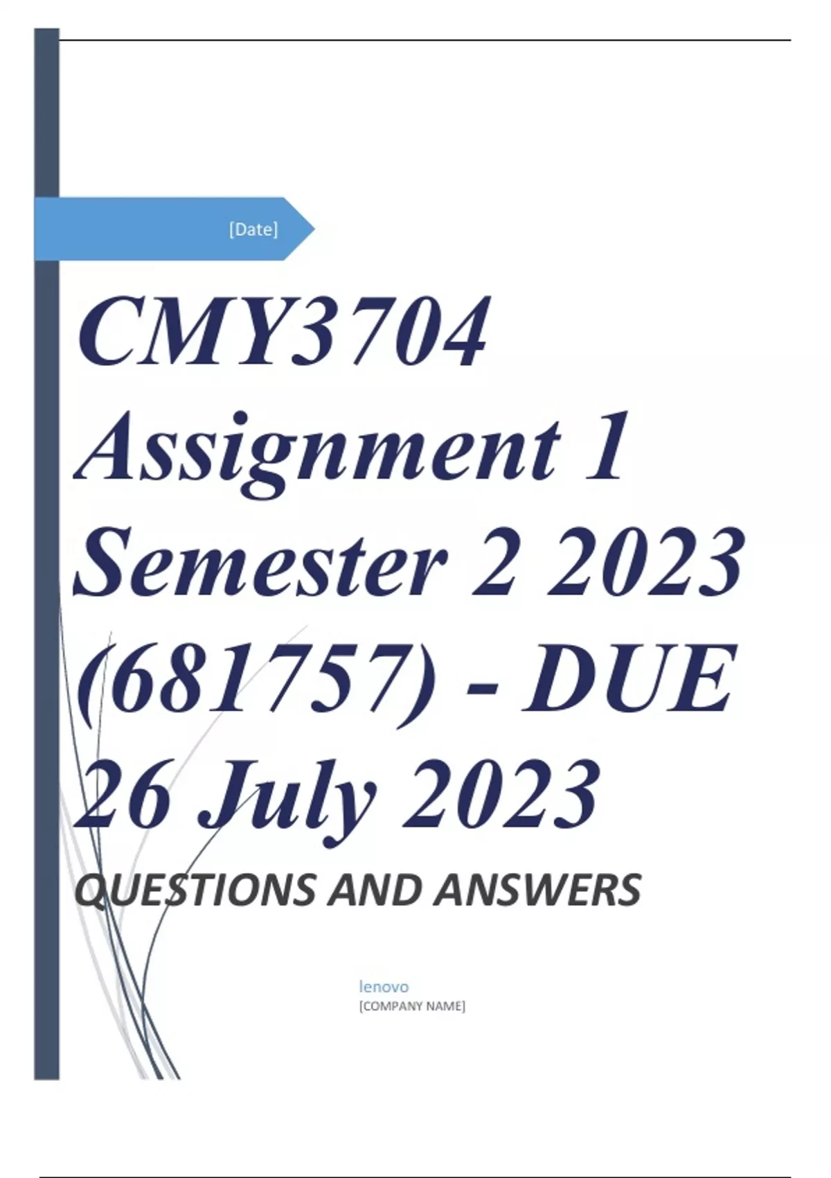 CMY3704 Assignment 1 Semester 2 2023 (681757) - DUE 26 July 2023