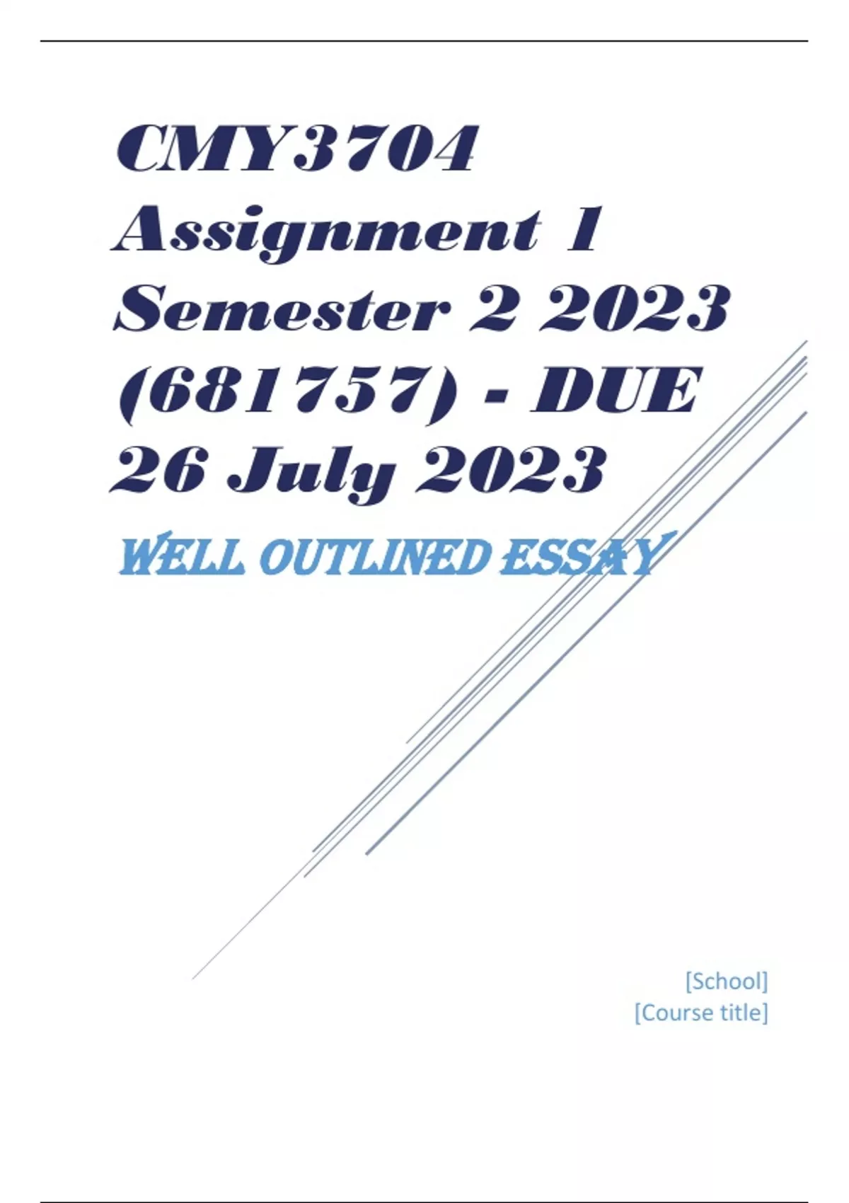 CMY3704 Assignment 1 Semester 2 2023 () - DUE 26 July 2023 WELL OUTLINED ANSWERS