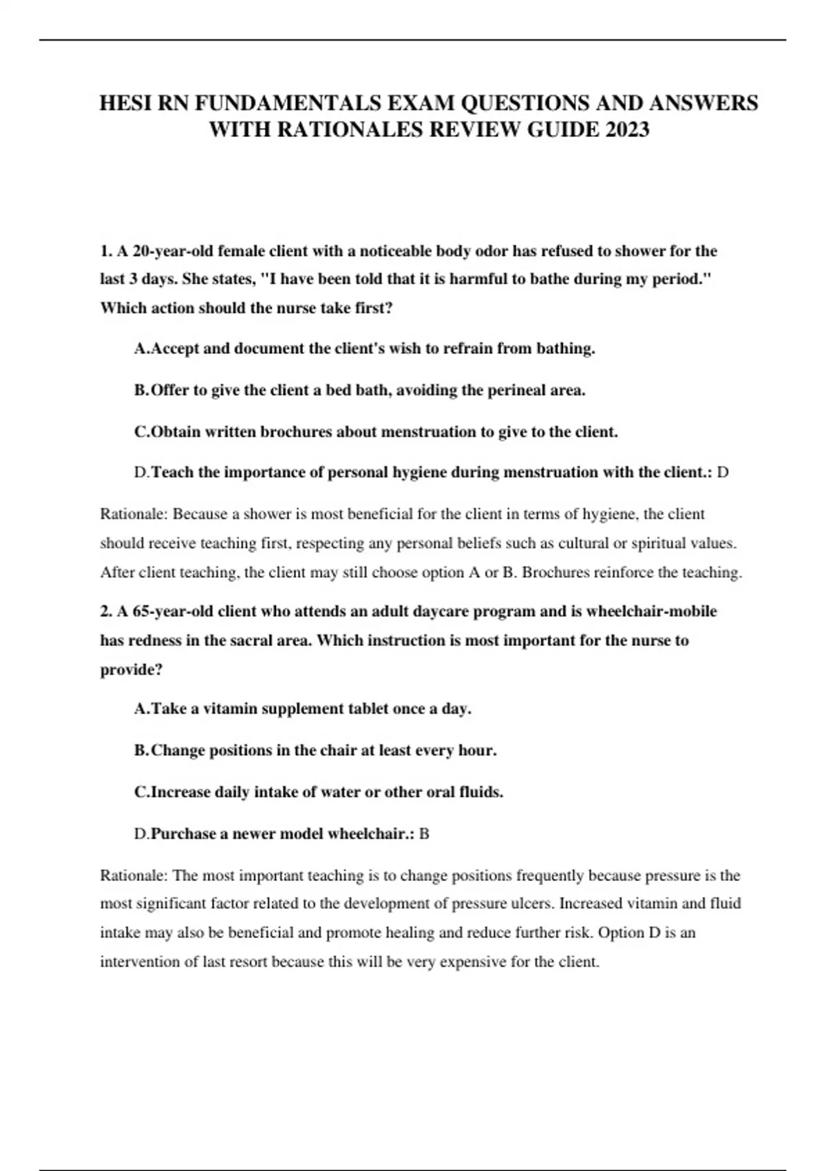 HESI RN FUNDAMENTALS EXAM QUESTIONS AND ANSWERS WITH RATIONALES REVIEW GUIDE 2023