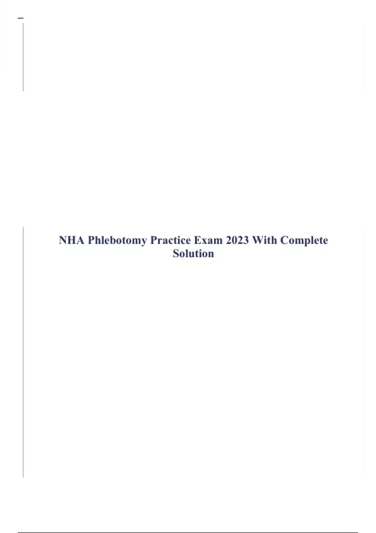 NHA Phlebotomy Practice Exam 2023 With Complete Solution