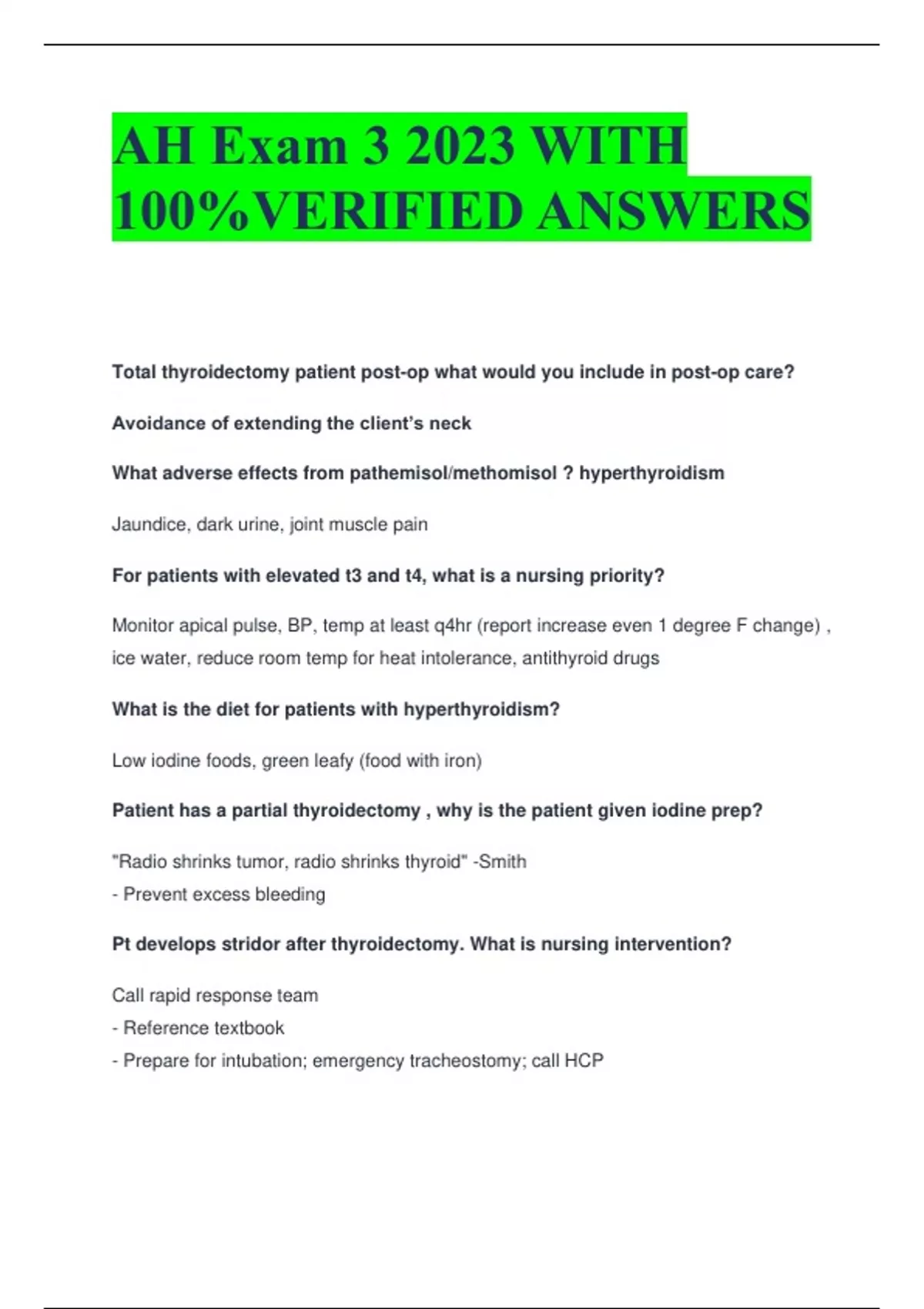 ah exam 3 2023 with 100verified answers