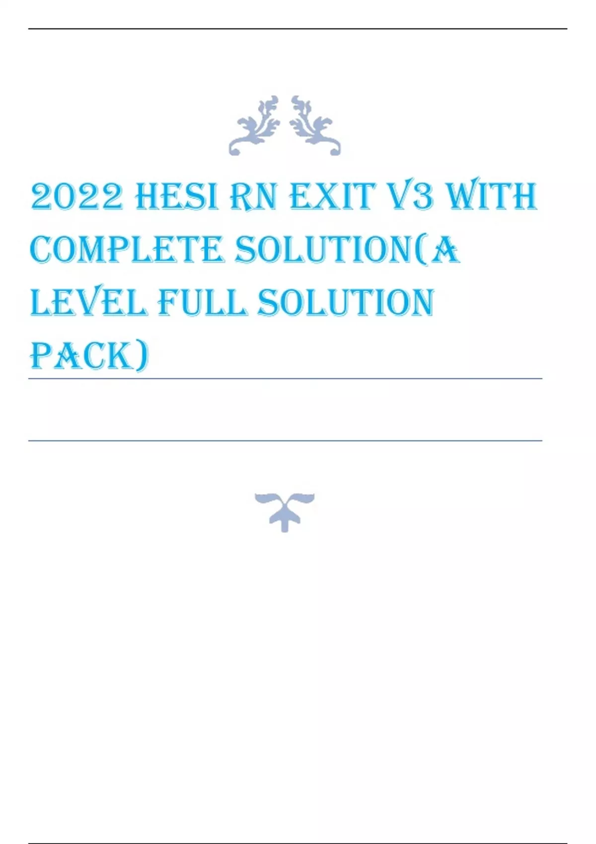 This A-Level Full Solution Pack for the 2022 HESI RN Exit Exam Version 3 (V3) provides a complete set of verified questions with comprehensive, step-by-step solutions and explanations. It covers all critical nursing domains including pharmacology, medical-surgical, maternity, pediatrics, psychiatric nursing, and leadership. Designed to reflect the actual HESI exam format, this resource helps nursing students strengthen clinical reasoning, improve test performance, and prepare confidently for their final RN exit exam.