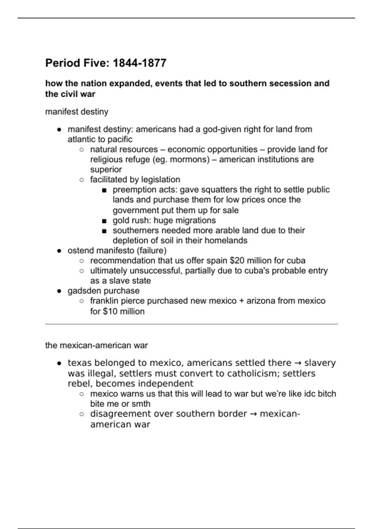 Use for: making sure you can explain all key concepts, events, and people from historical period 5. This is an outline of everything you should know for the exam, I recommend making a copy and listing everything you know under each part to study. This is extremely useful for identifying what you need to study for for the test and helped me score well!