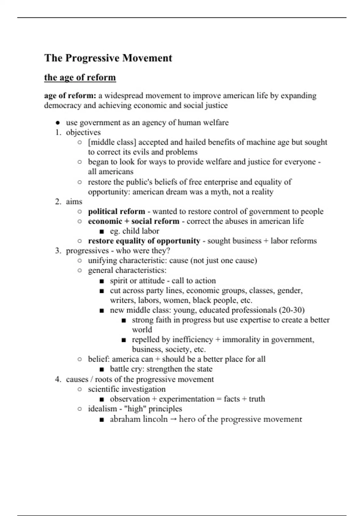 These notes cover the start of historical period 5, with a focus on the Progressive Movement, societal change at the turn of the century, and other relevant topics.