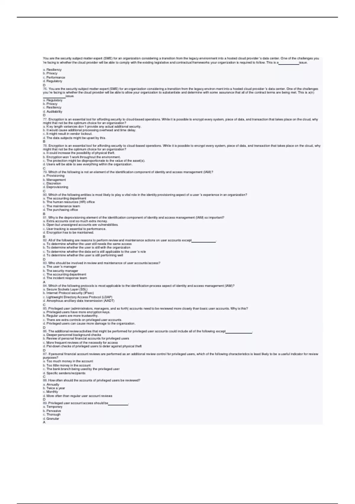 wgu c838 managing cloud security final exam