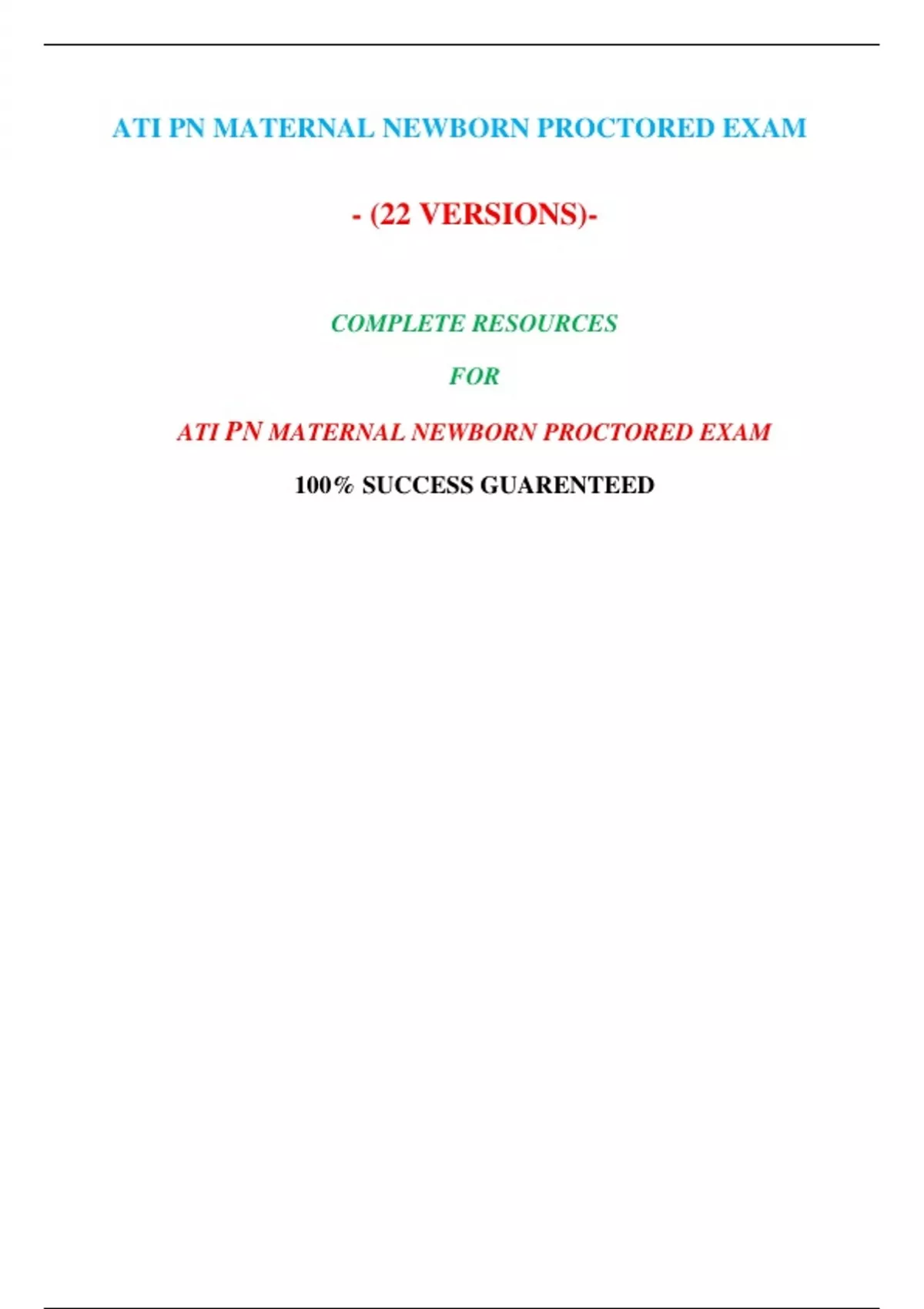 , ATI PN MATERNAL NEWBORN PROCTORED EXAM