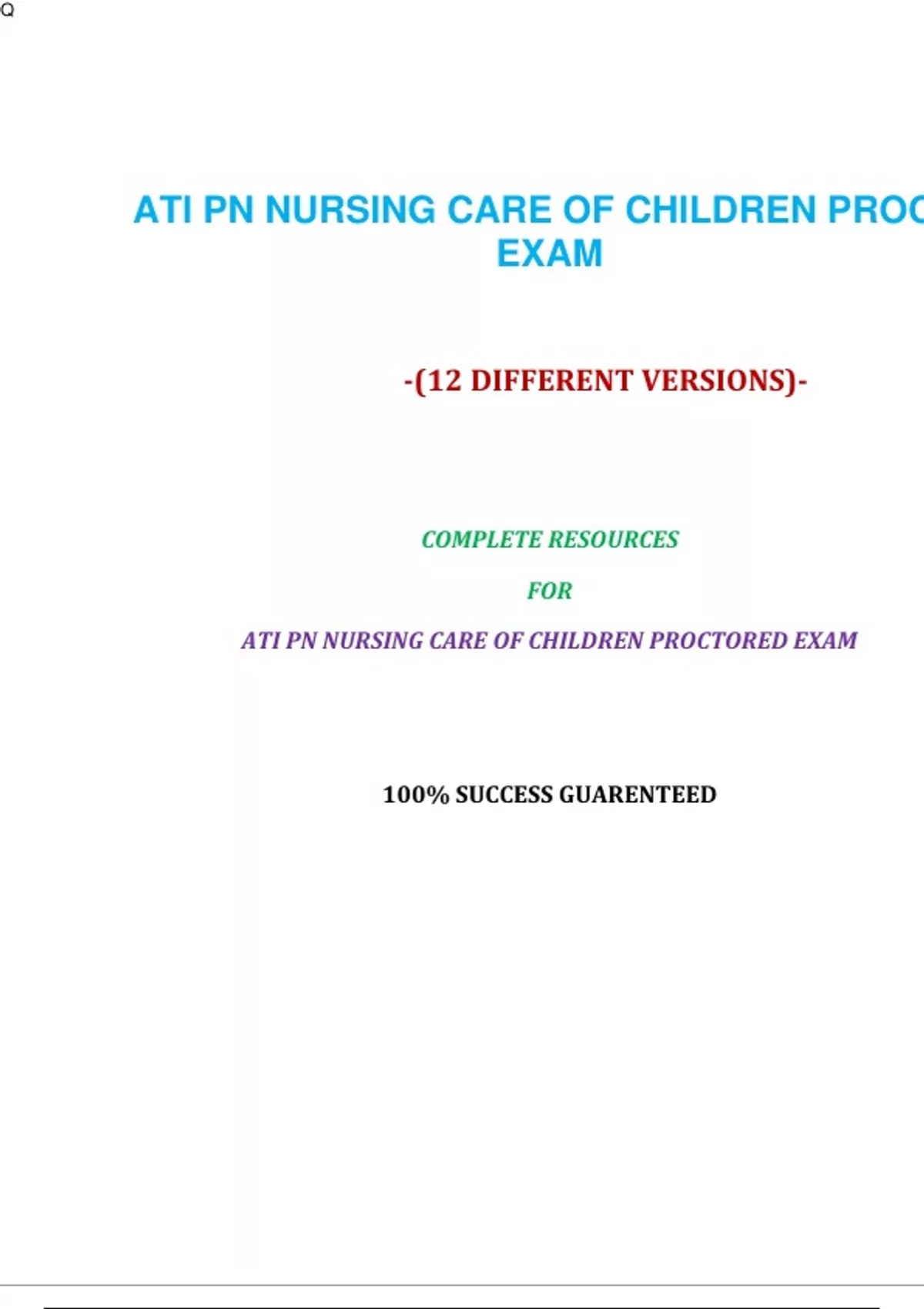 ATI PN NURSING CARE OF CHILDREN PROCTORED EXAM