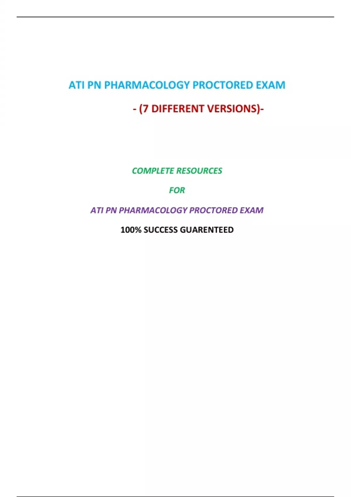 , ATI PN PHARMACOLOGY PROCTORED EXAM