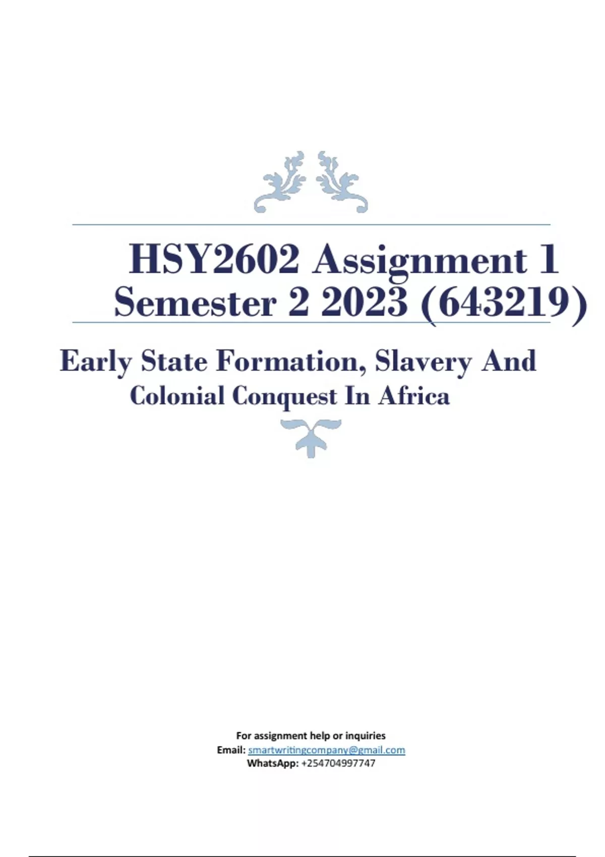 HSY2602 Assignment 1 Semester 2 2023 (643219)