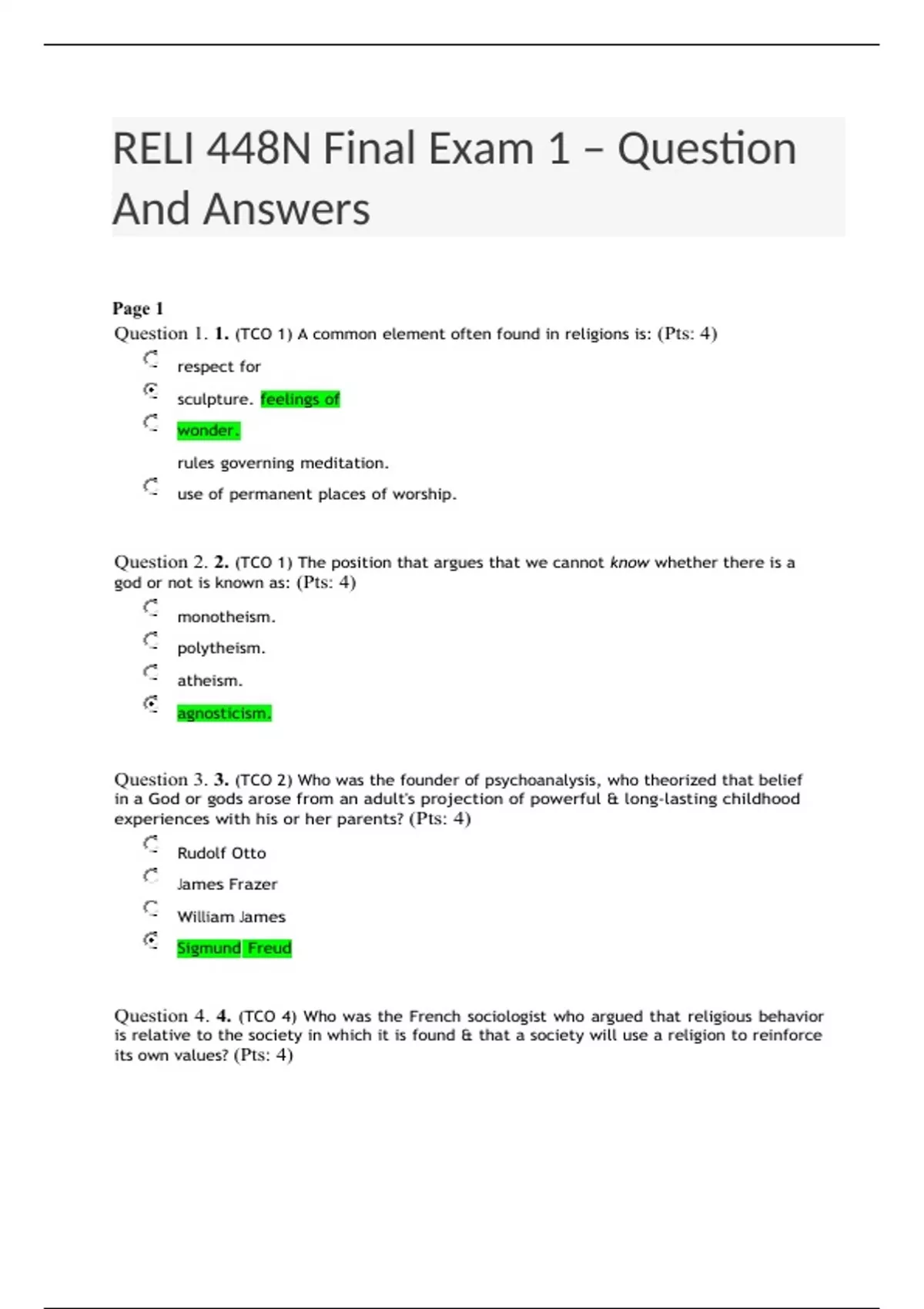 reli 448n final exam 1 – question and answers