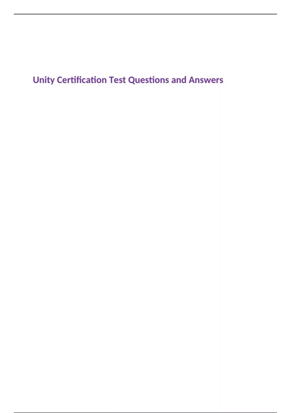 Unity Certification Test Questions and Answers