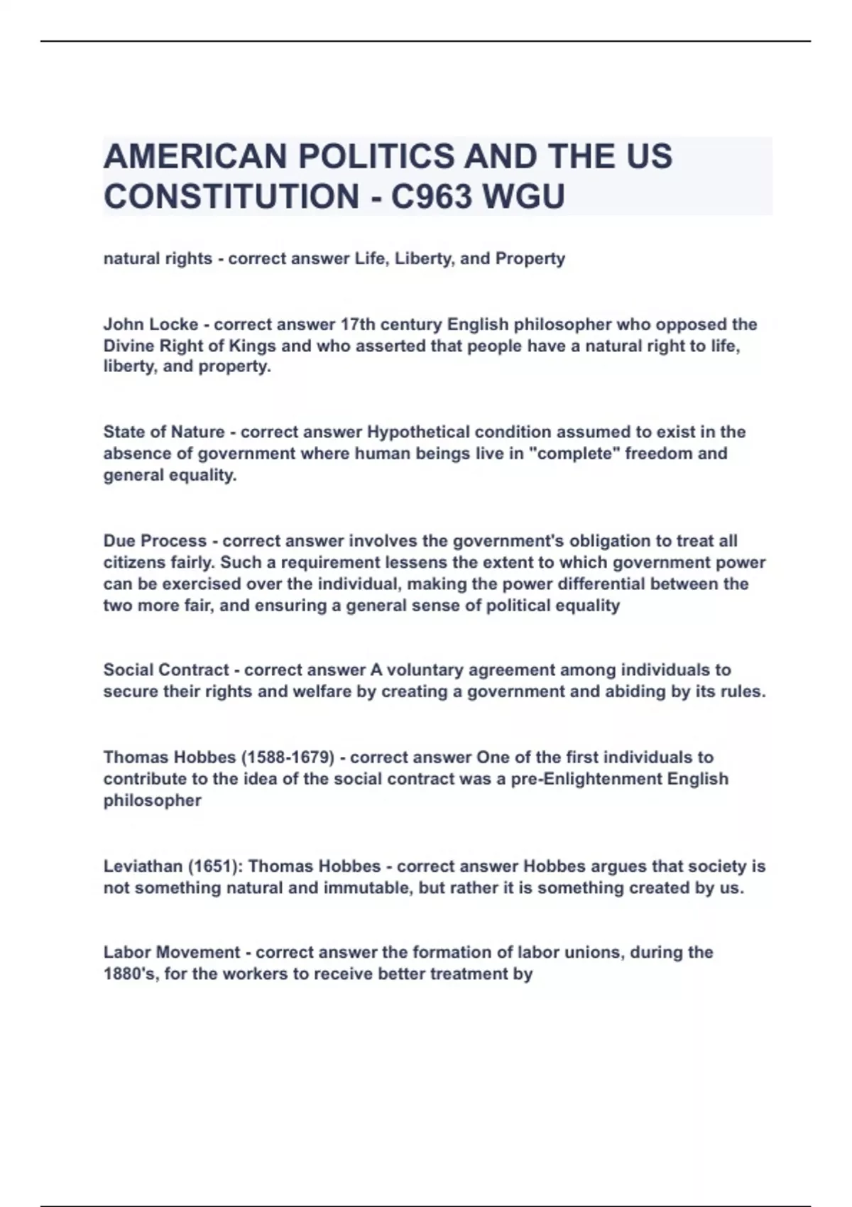 AMERICAN POLITICS AND THE US CONSTITUTION - C963 WGU|UPDATED&VERIFIED|100% SOLVED|GUARANTEED SUCCESS