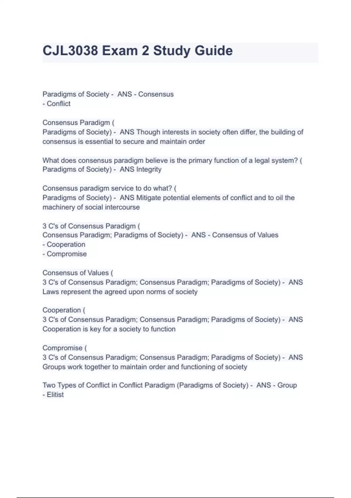 SUMMERY EXAM 2 STUDY GUIDE (NEW UPDATE) CJL 3038 (Verified Questions & Answers)