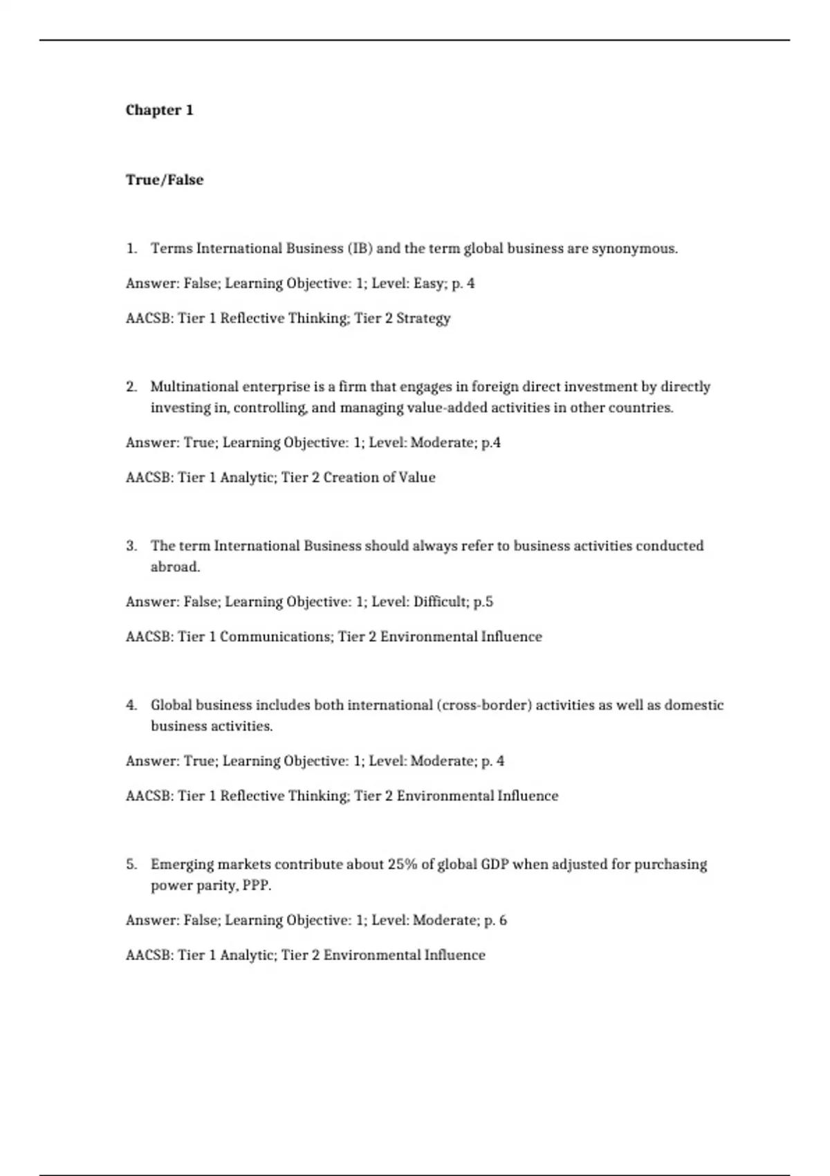 1. Terms International Business (IB) and the term global business are synonymous.