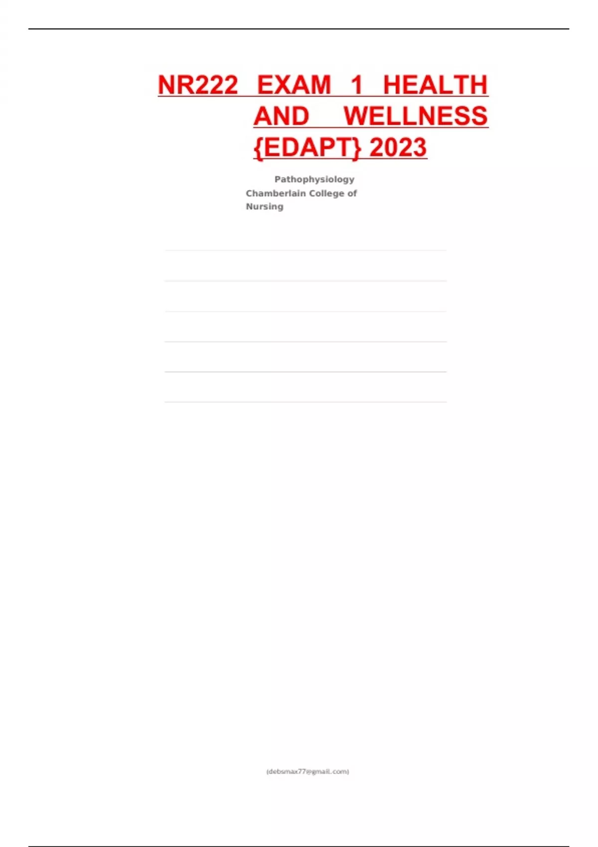 NR222 EXAM 1 HEALTH AND WELLNESS {EDAPT} 2023