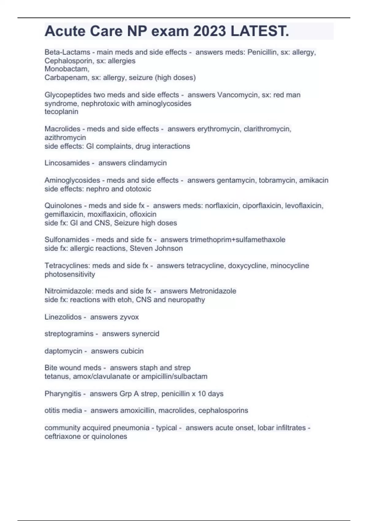Acute Care NP exam 2023 LATEST.