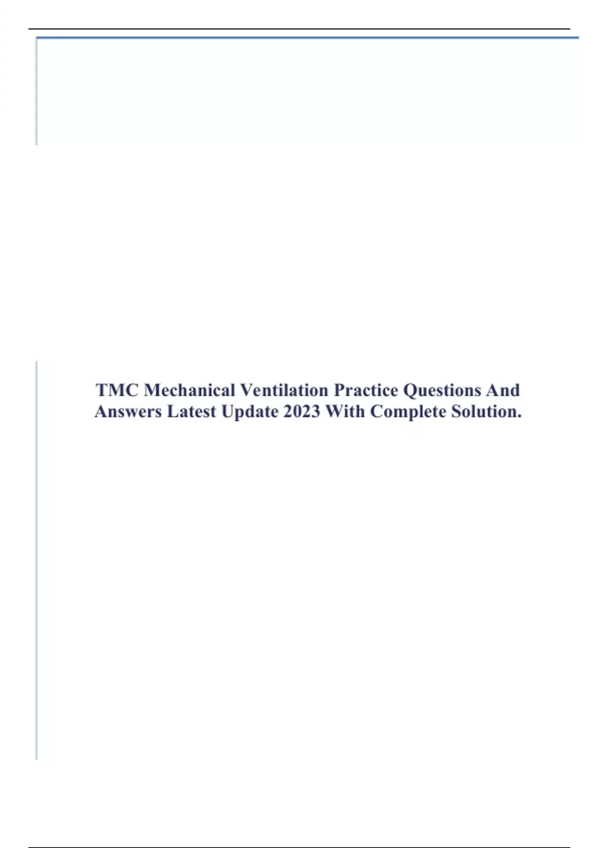 TMC Mechanical Ventilation Practice Questions And Answers Latest Update 2023 With Complete Solution.