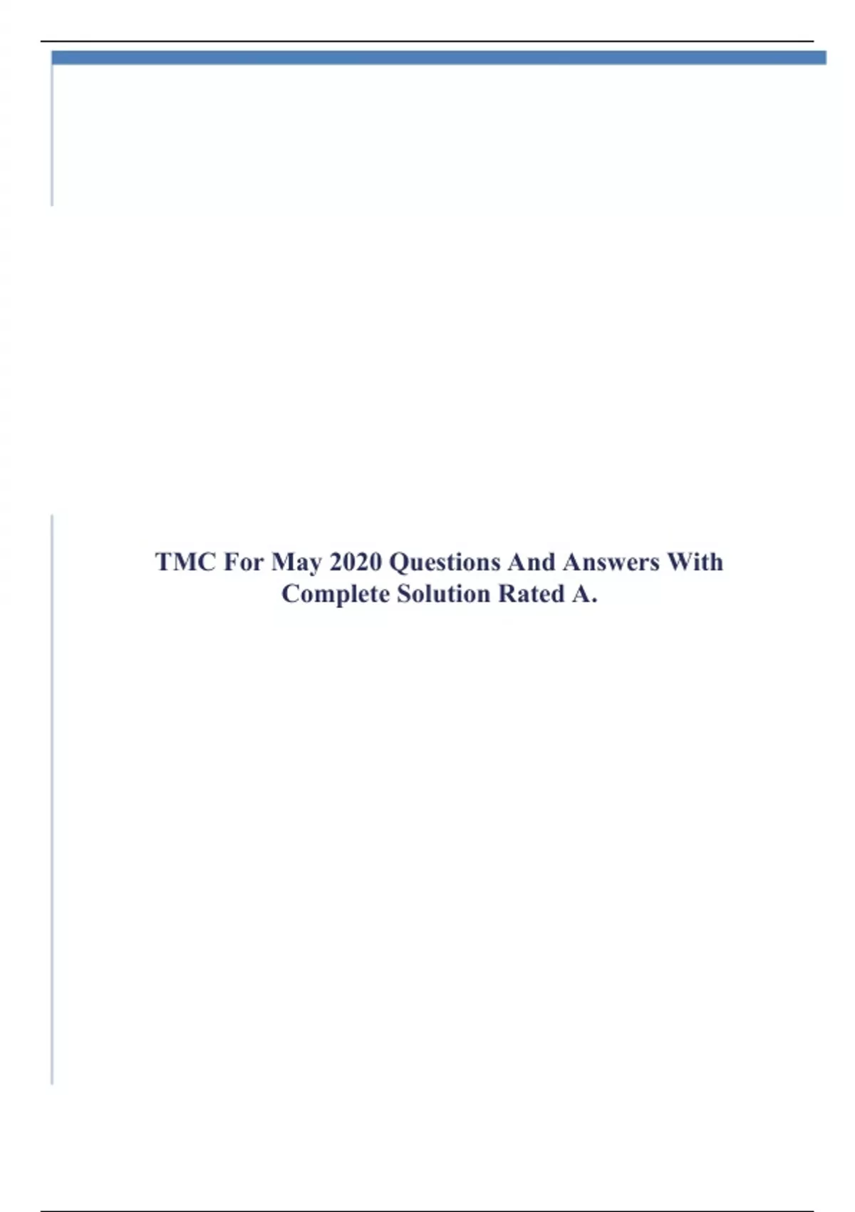 TMC For May 2020 Questions And Answers With Complete Solution Rated A.