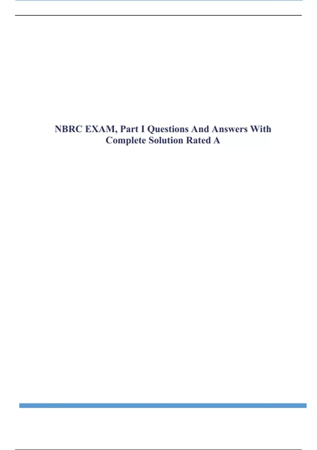 NBRC EXAM, Part I Questions And Answers With Complete Solution Rated A.
