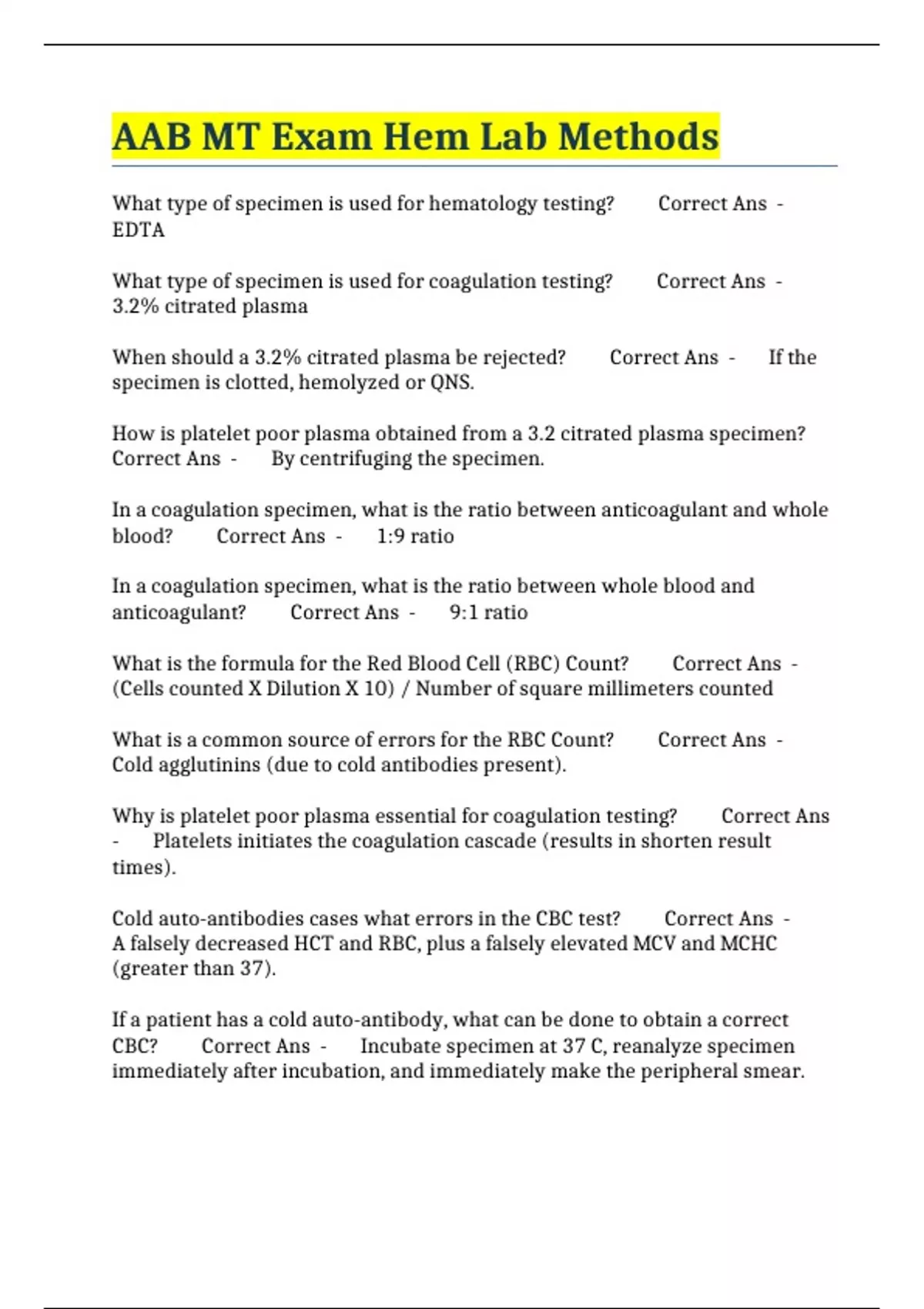 AAB MT Exam Hem Lab Methods