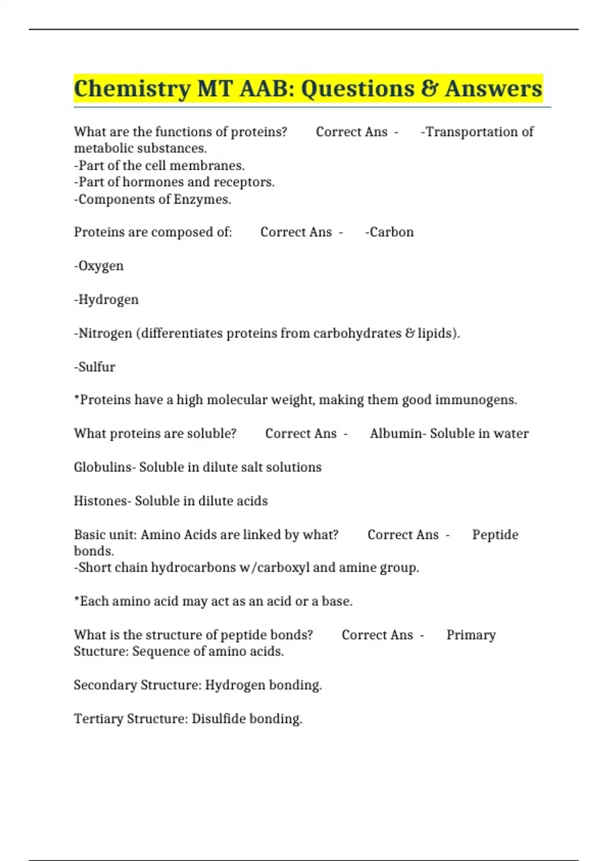 Chemistry MT AAB: Questions & Answers