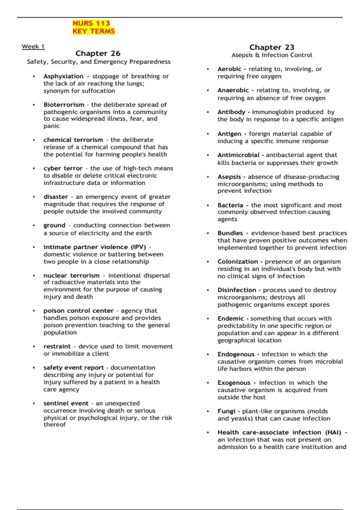 - NURS 113 KEY TERMS