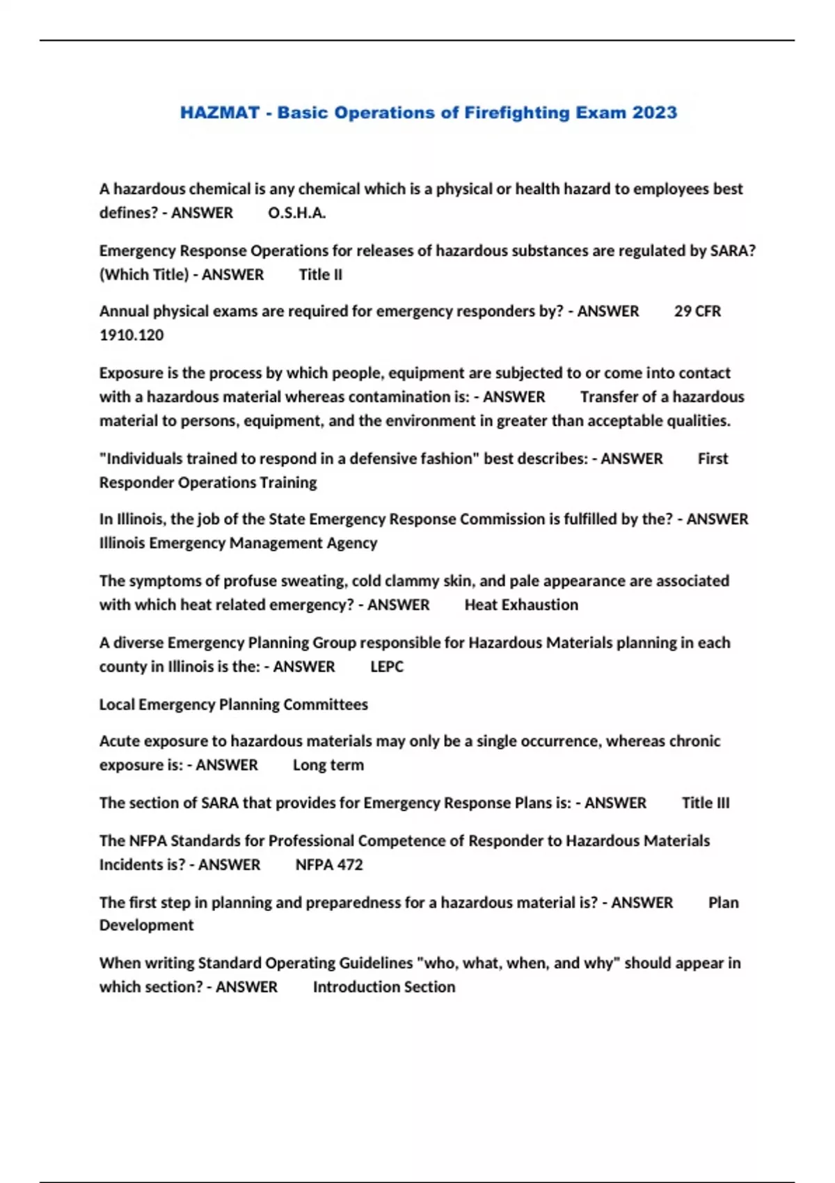 HAZMAT - Basic Operations of Firefighting Exam 2023