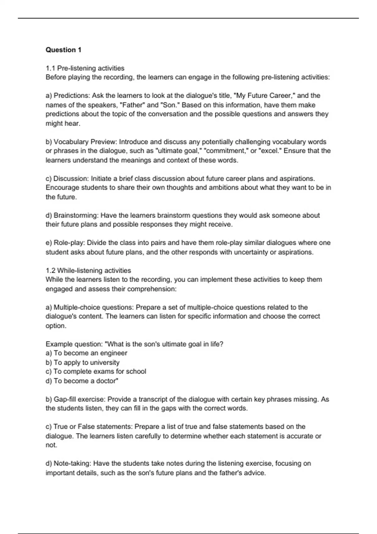 1.1 Pre-listening activities