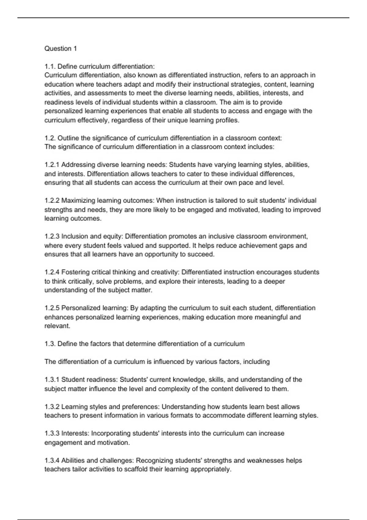 1.2. Outline the significance of curriculum differentiation in a classroom context: