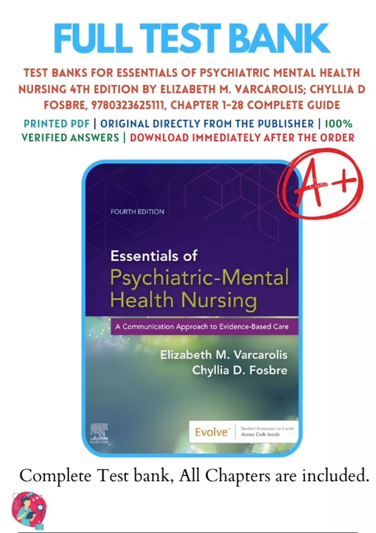 Test Banks For Essentials of Psychiatric Mental Health Nursing 4th Edition by Elizabeth M. Varcarolis; Chyllia D Fosbre, 9780323625111, Chapter 1-28 Complete Guide