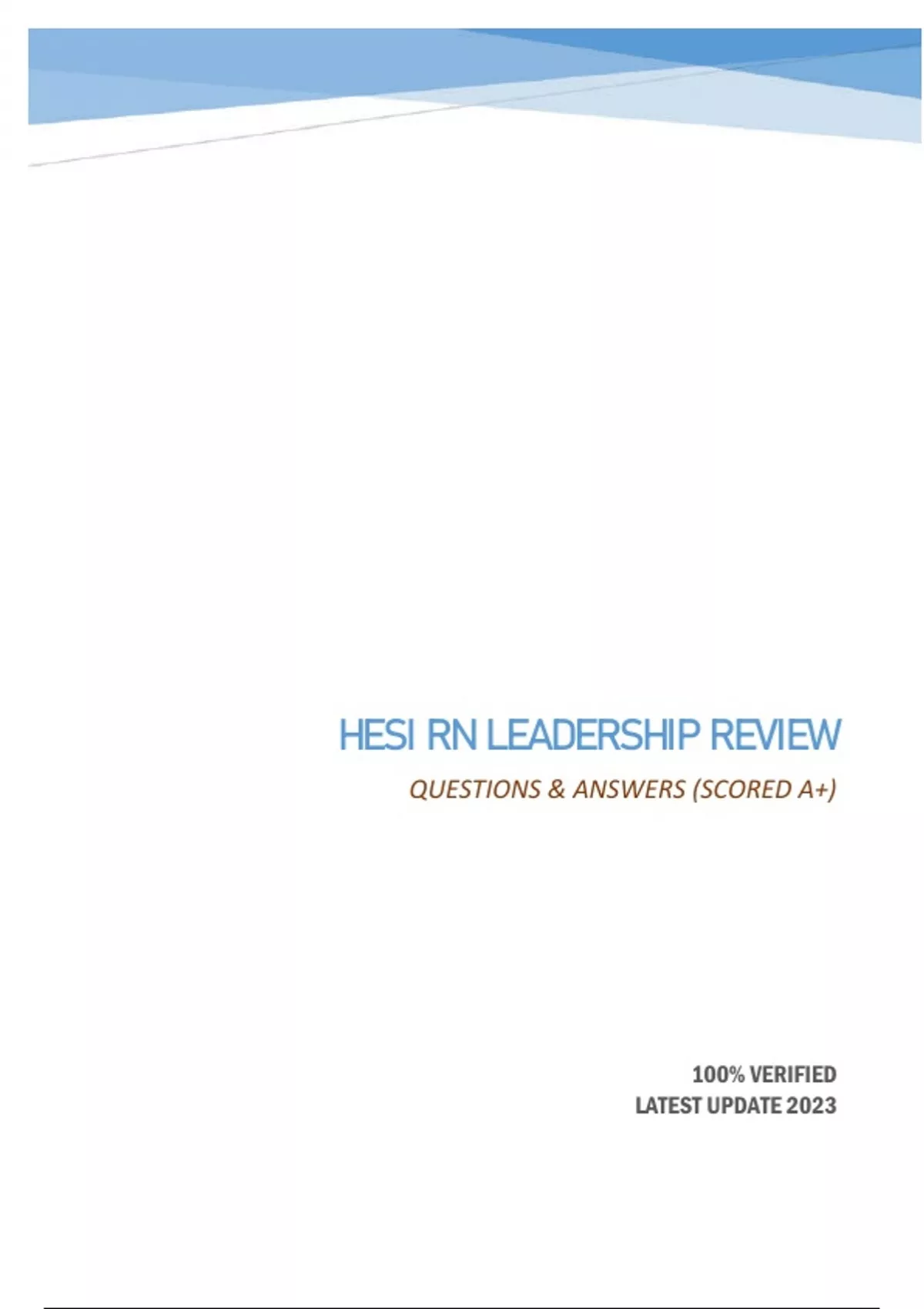 HESI RN LEADERSHIP REVIEW - QUESTIONS & ANSWERS (SCORED A+) 100% VERIFIED BEST UPDATE 2023