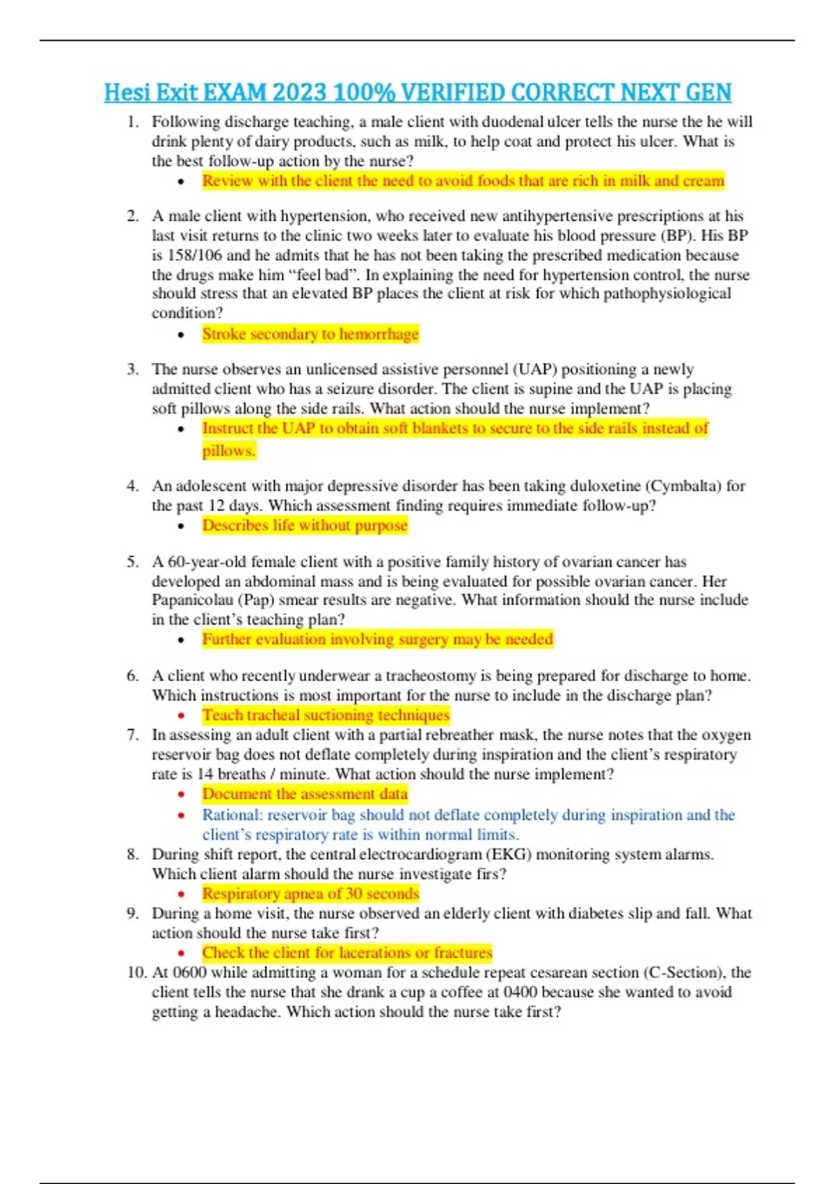 Hesi Exit EXAM 2023 100% VERIFIED CORRECT NEXT GEN