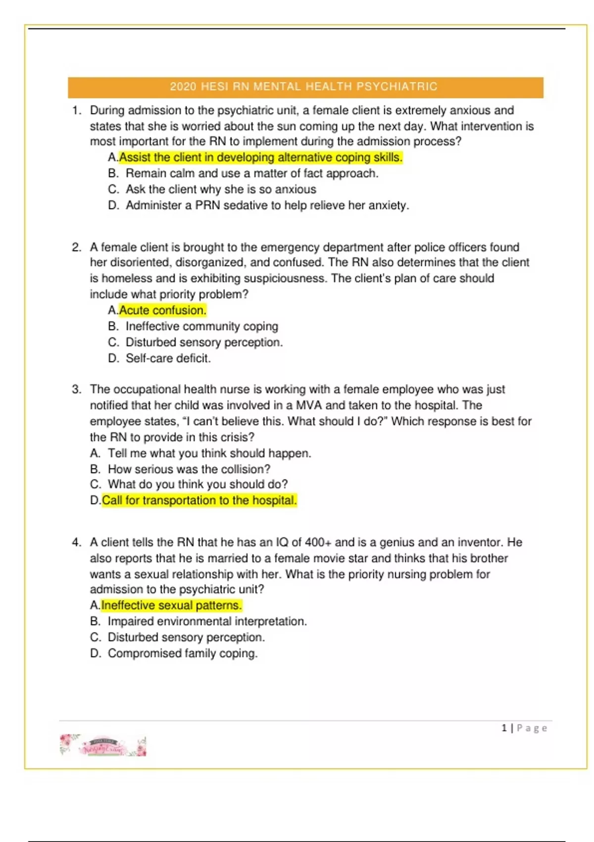 2020 HESI RN MENTAL HEALTH PSYCHIATRIC 2020 HESI RN MENTAL HEALTH PSYCHIATRIC 2020 HESI RN MENTAL HEALTH PSYCHIATRIC