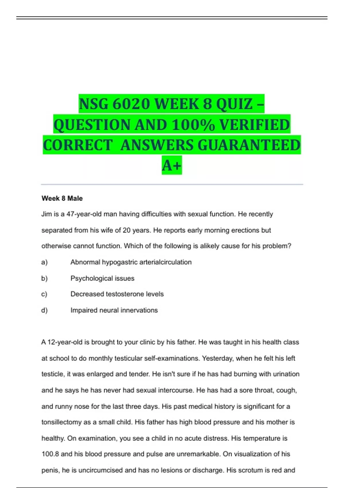 NSG 6020 WEEK 8 QUIZ –QUESTION AND 100% VERIFIED CORRECT ANSWERS GUARANTEED A+